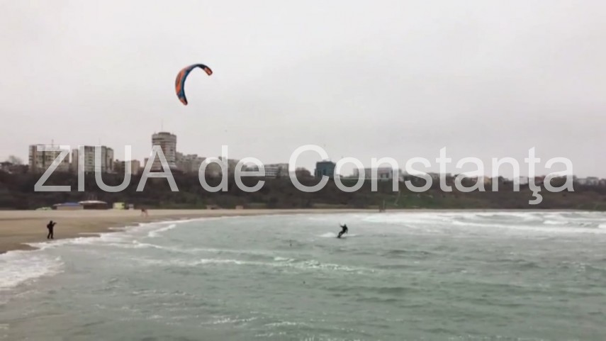 Cu toate acestea, amatorii sporturilor extreme par să se simtă în largul lro la malul mării pe o astfel de vreme.