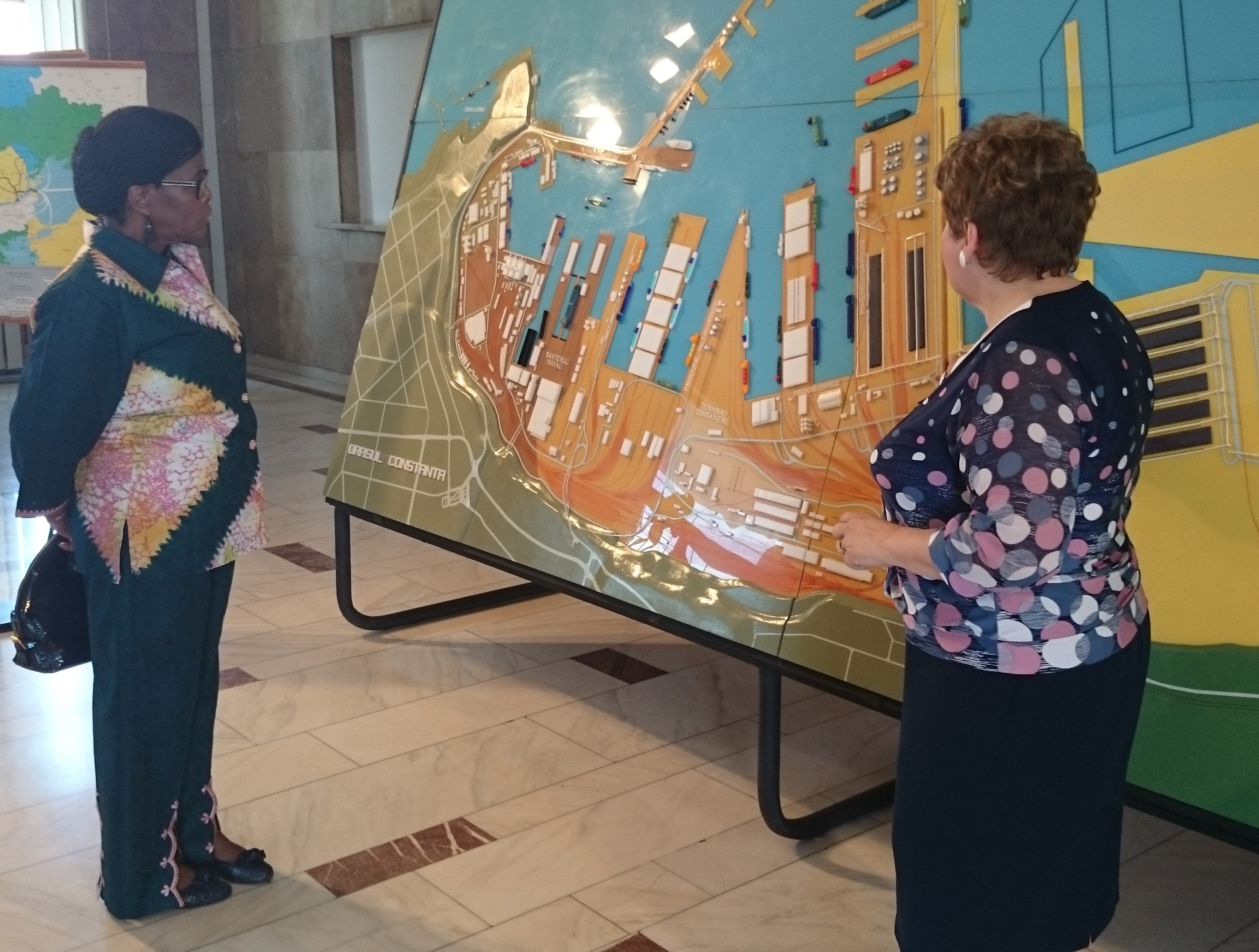 Împreună cu reprezentanții CN Administrația Porturilor Maritime SA Constanța, diplomatul sud-african a urcat la bordul navei Anghel Saligny pentru o vizită tehnică, fiind interesat de terminalele din Portul Constanța, zonele cu potențial pentru investiții și conexiunea portului cu Canalul Dunăre-Marea Neagră.