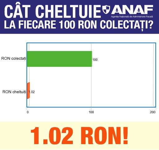 ANAF cheltuie 1,02 lei la fiecare 100 de lei colectați