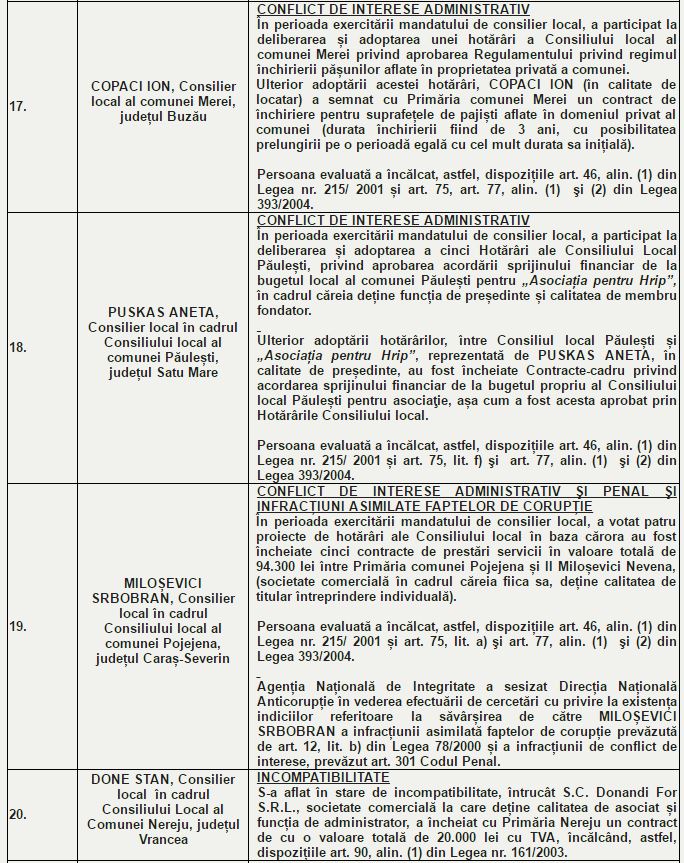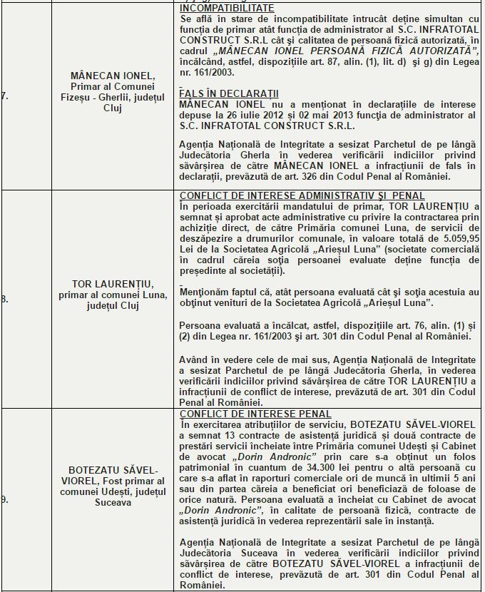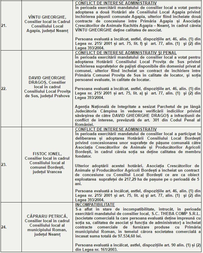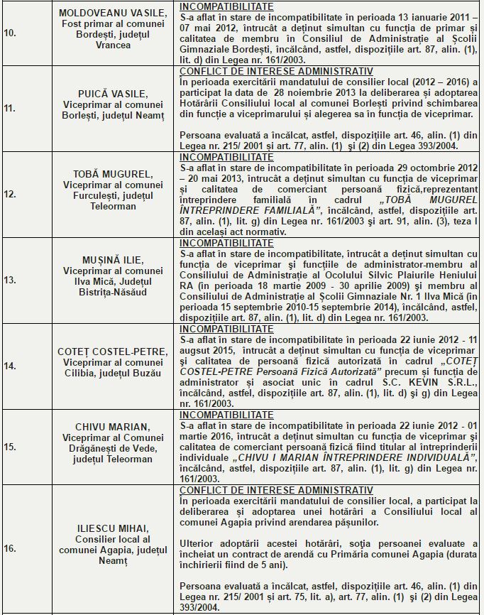 ANI: 24 foşti sau actuali aleși locali - incompatibilitate și conflict de interese administrativ şi penal