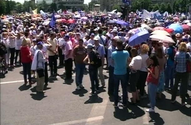 Aproximativ 8.000 de profesori protestează la Bucureşti din cauza nemulţumirii legate de nivelul de salarizare