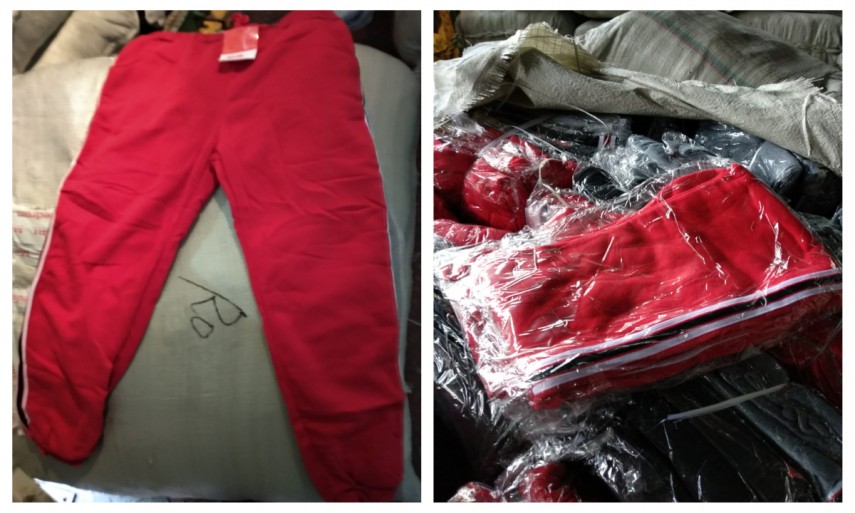 În urma controlului, au fost descoperite 3.015 perechi de pantaloni sport susceptibile a aduce atingere dreptului de proprietate intelectuală al unei mărci cunoscute.