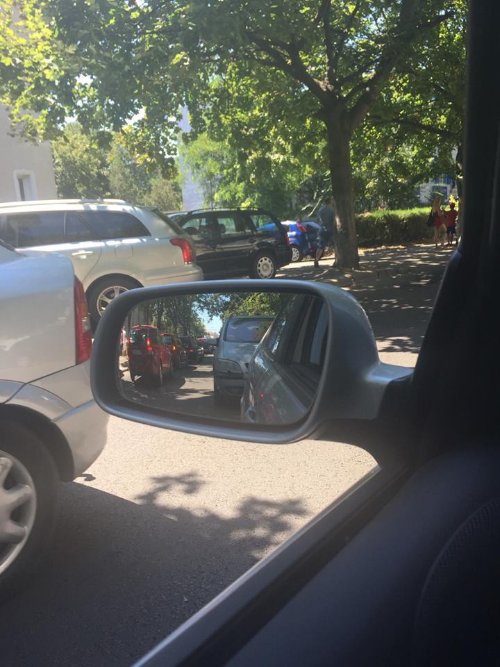 Traficul se îmbunătățește odată cu trecerea de Liceul Traian. Observăm totuși, mașinile parcate pe partea stângă, fapt ce demonstrează aglomerația din zonă.