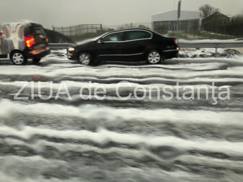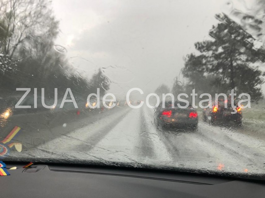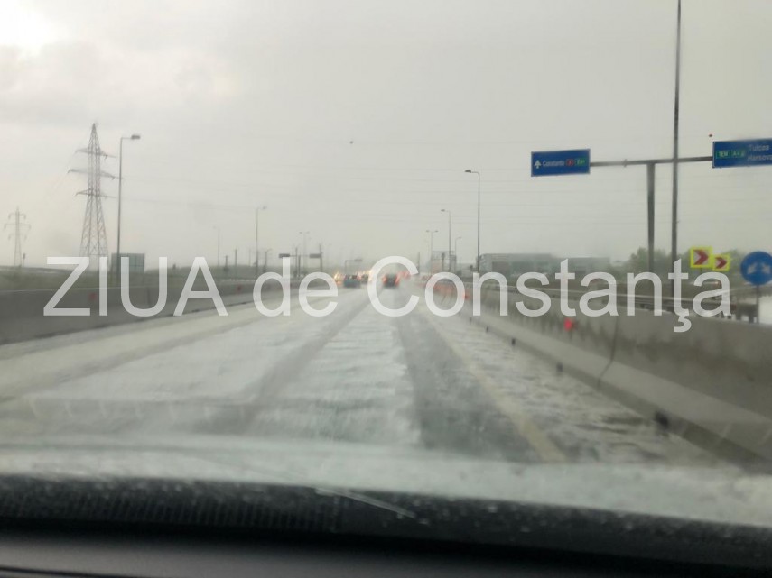 Atenție șoferi! Grindină pe Autostrada A4! Se circulă cu dificultate (galerie foto+video)