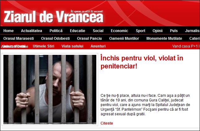 Atenţie violatori. Nu e de glumă Închis pentru viol, violat în penitenciar!