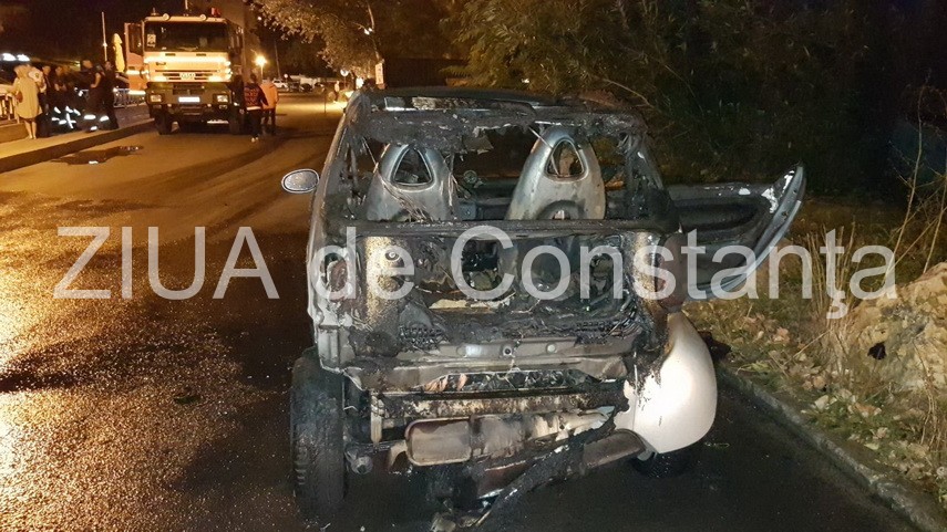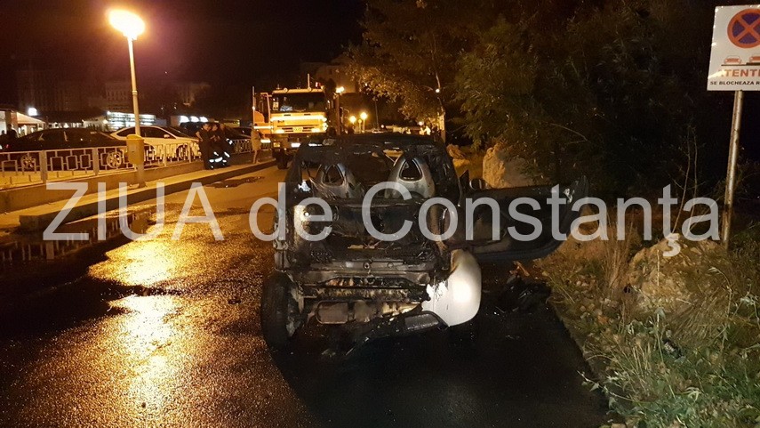 Autoturism în flăcări în Portul Tomis din Constanța (galerie foto+video)