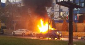 Autoturism în flăcări, în stațiunea în Mamaia