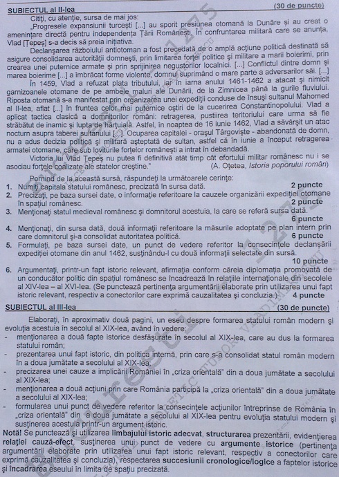 Subiectele la istorie: