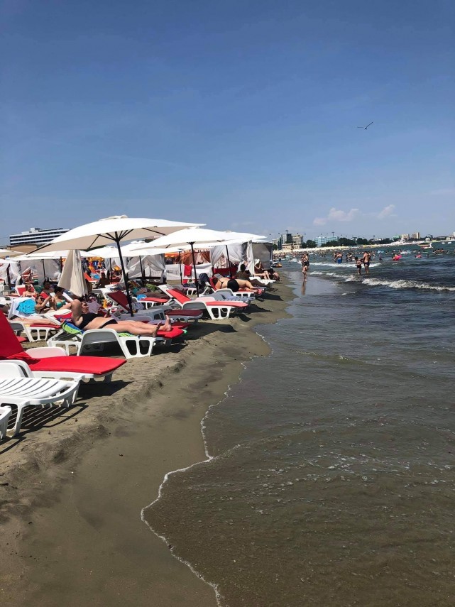 Bătaie de joc pe plajele din Mamaia. Şezlongurile sunt amplasate la un pas de apa mării