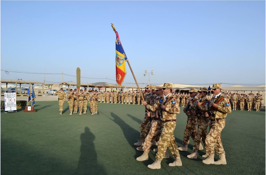 Ceremonialul marchează încheierea cu succes a misiunii militarilor „Călugăreni” şi asumarea responsabilităţii „Rechinilor Albi”.