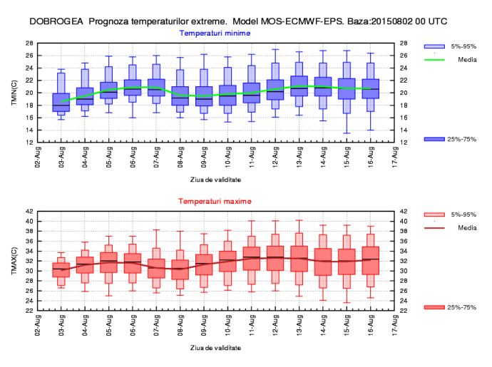 Astfel, în Dobrogea, vremea va deveni călduroasă în cea mai mare parte a regiunii, astfel că temperaturile maxime se vor menţine în general la o medie de 30...32 de grade, iar în vestul zonei izolat va fi caniculă, cel mai probabil în a doua săptămână. Minimele termice vor fi de 20...22 de grade, valori mai mici (aproximativ 19 grade, medie regională) urmând a se înregistra în primele nopţi.