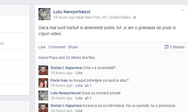 "Dacă mai sunt hărţuit şi ameninţat, public tot, şi am o gramadă de poze şi clipuri video", a scris acesta pe contul personal de Facebook.