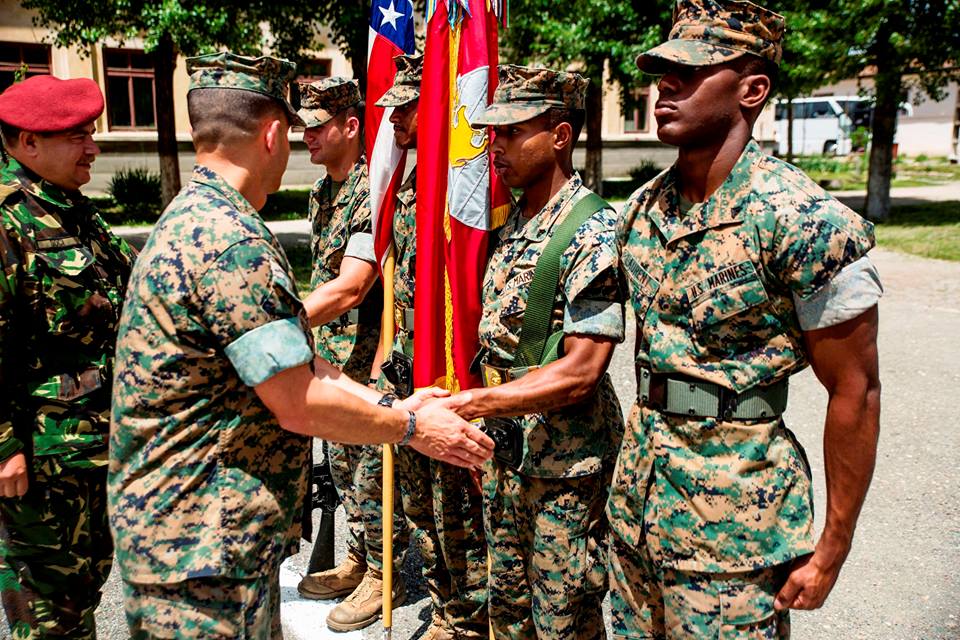 Ambasada SUA la București a postat pe platforma de socializare Facebook o fotografie prin care este descrisă o ceremonie care a avut loc în cinstea parteneriatului dintre forţele militare ale României şi cele ale SUA.La acest eveniment au participat infanteriştii marini americani, mai exact cin cadrul Forţelor Terestre Române US Marine Forces Europe and Africa, aflaţi în România şi colegii lor români din Brigada 9 mecanizată.
