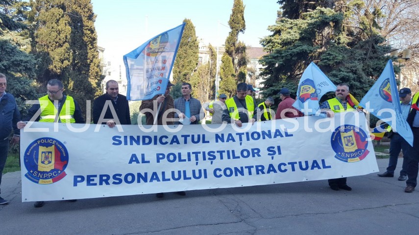 La Constanţa, astăzi, 29 martie, Sindicatul Naţional al Poliţiştilor şi Personalului Contractual protestează, cerând majorarea salariilor.„Nu dorim să fim bogaţi, ne dorim salarii decente, venituri care să ne asigure confortul şi sprijinul moral în a face ceea ce e de făcut”, spun aceştia.