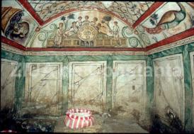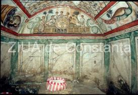 Mormântul a fost descoperit în februarie 1988, la intersecţia străzilor Mircea cel Bătrân şi Ştefan cel Mare. Este vorba despre un cavou de familie, construit în jurul anului 330, după cum susţin arheologii. Fresca principală înfăţişează un banchet funerar (pomana din zilele noastre, cu şase farfurii, cinci ale persoanelor participante şi a şasea a defunctului). În interiorul mormântului au fost descoperite cinci schelete - patru ale unor adulţi şi unul de copil, o fetiţă. Fazele de evoluţie istorică identificate la cercetarea picturilor murale, a scheletelor şi a mobilierului sărăcăcios cuprind a doua jumătate a secolului IV, dar şi elemente de la sfârşitul secolului IV - începutul secolului V.