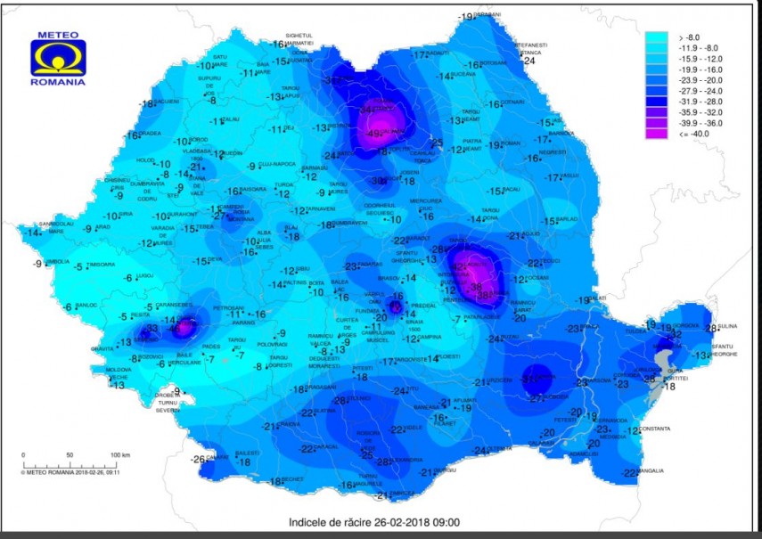 Este cod portocaliu în Dobrogea de vreme severă. Temperaturile au scăzut semnificativ faţă de cele înregistrate în zilele precedente.Potrivit ANM, în această dimineaţă, la ora 9.00 cea mai scăzută temperatură din Dobrogea a fost înregistrată în zona Murighiol unde mercurul din termometre a coborât până la valoarea de -32 grade Celsius.