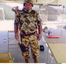 Aşa după cum a anunţat, încă de ieri, comandorul în rezervă a ajuns, în faţa sediului PSD Din Bucureşti, în ţinuta tip deşert, de instrucţie.El îşi manifestă astfel indignarea față de politica de umilire, discriminare și denigrare a militarilor români în activitate și în rezervă/retragere.