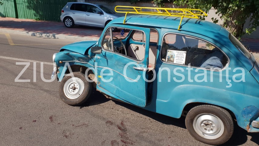 În accident este implicat un autoturism Fiat 500 din anul 1964 şi un taxi.