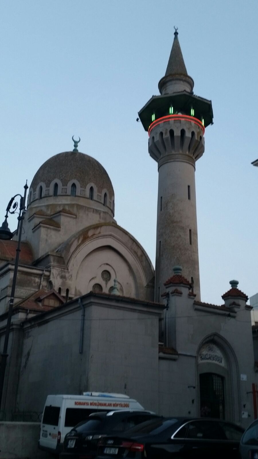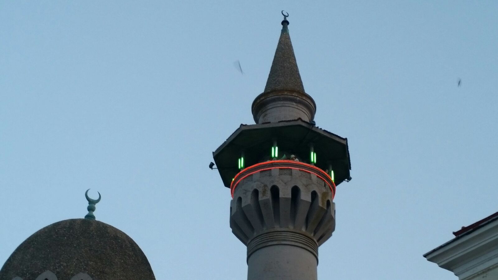 În urmă cu câteva zile o mică schimbare s-a produs la Marea Moschee din Constanța.Minaretul a fost iluminat cu un șirag de beculețe de culoare roșie-purpurie care îi schimbă vizibil aspectul și face să nu treacă neobservată de cei care cunosc bine zona.