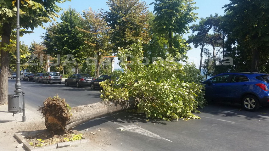 UPDATE Arborele avea peste 30 de ani:Un copac s-a prăbuşit din senin. Maşini avariate aproape de Cazino (galerie