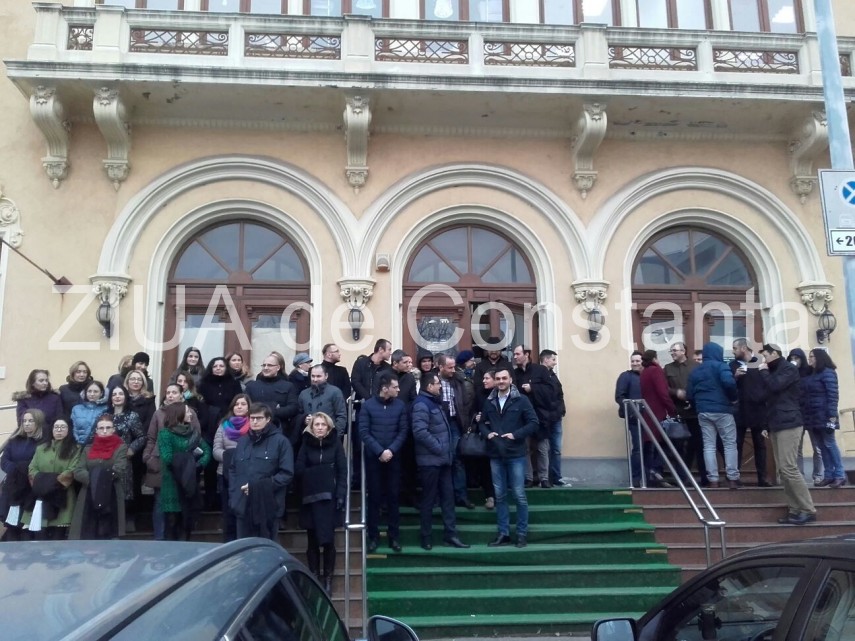 75 de magistrați sunt prezenți pe treptele Palatului de Justiție, judecători și procurori din cadrul DNA, Parchetul de pe lângă Judecătoria Constanța dar și reprezentanți ai altor unități de Parchet.