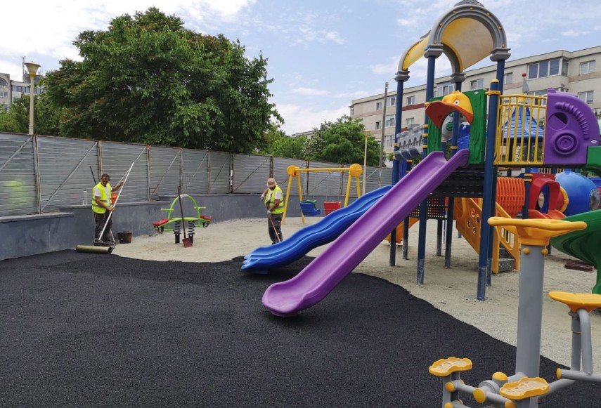 Continuă lucrările la locul de joacă de pe aleea Daliei, din Constanța. A fost turnat covorul de cauciuc (galerie