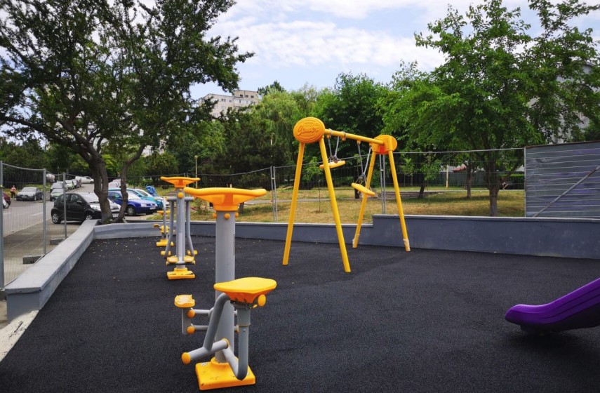 Continuă lucrările la locul de joacă de pe aleea Daliei, din Constanța. A fost turnat covorul de cauciuc (galerie