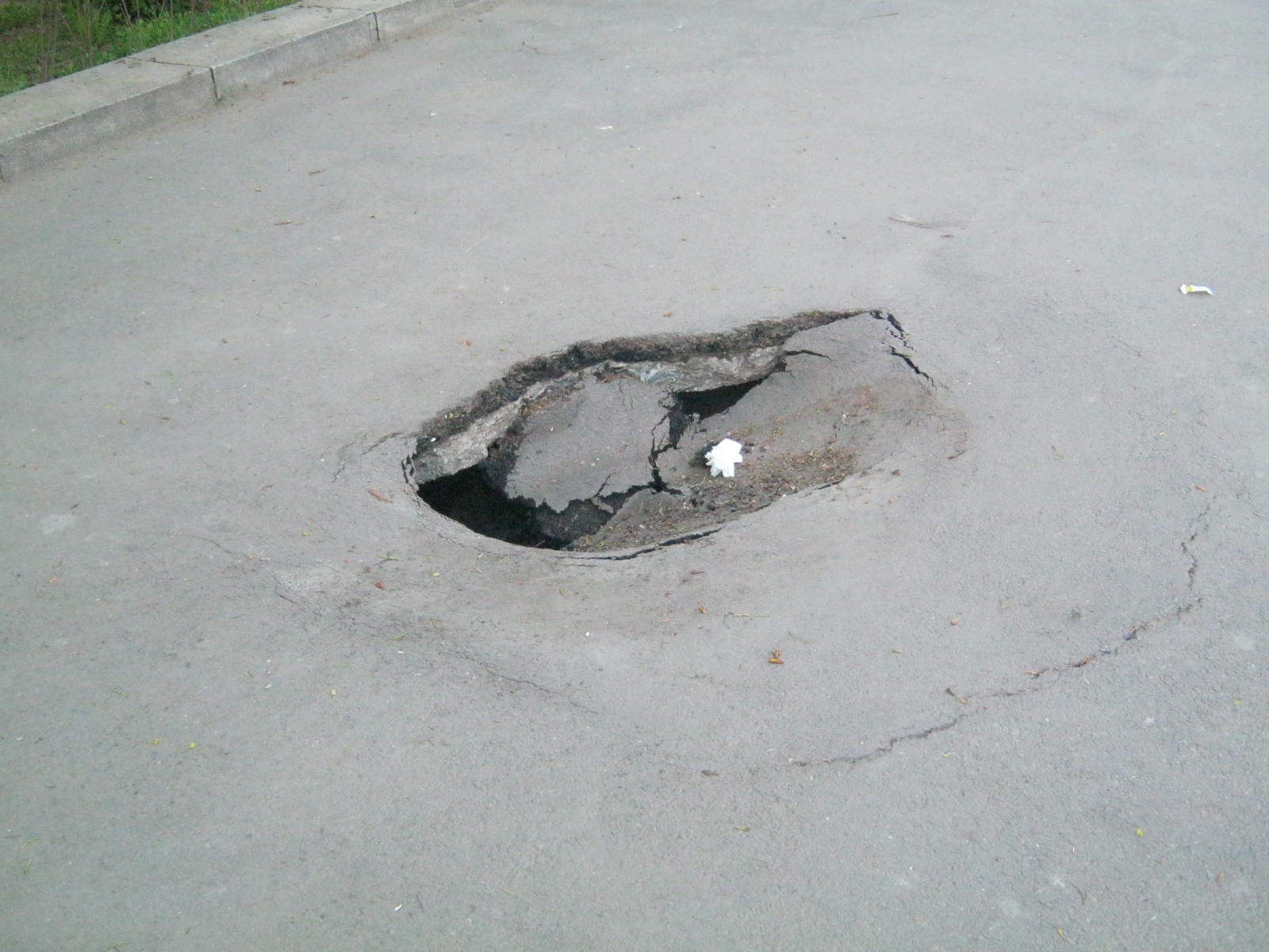Problema cea mai gravă este că din trotuarul peste care circulă acum pietonii a mai rămas doar o pojghiţă subţire de asfalt, pe dedesubt fiind format un hău destul de periculos.