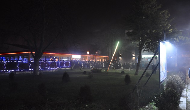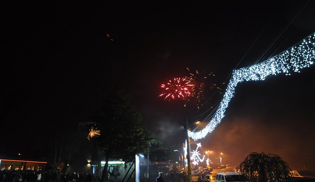 În centrul localității cetățenii ciocneau pahare cu șampanie. Nu a fost uitată nici tradiția de a sparge pahare cu prilejul Anului Nou pentru fericire.