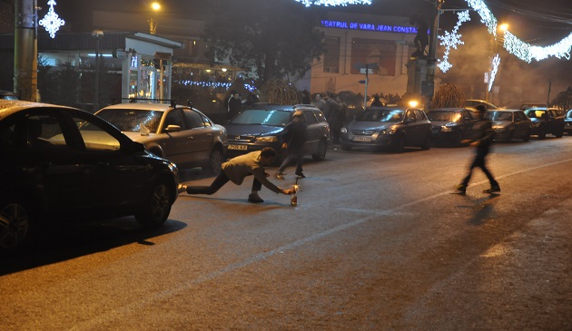 Zeci de oameni au ieșit în stradă pentru a-și ura „La mulți ani!” și a vesti prin focuri de artificii sosirea Anului 2014.