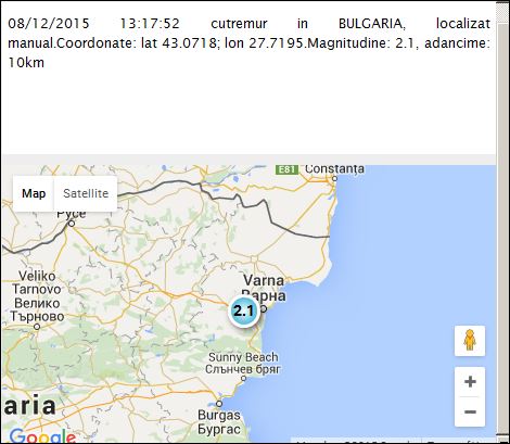 Cutremurul a fost localizat manual de specialiştii de la Institutul Naţional de Cercetare-Dezvoltare pentru Fizica Pământului la coordonatele lat 43.07/lon 27.71, în Bulgaria, la graniţa cu România, între Varna şi Nisipurile de Aur.
