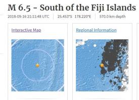 Un seism cu magnitudinea M 6.0 s-a produs, la 17.51-Ora României (04.51-ora locală) în zona Insulelor Fiji, la 571 kilometri adâncime.