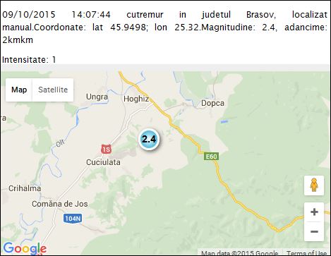Potrivit Institutului Naţional de Cercetare-Dezvoltare pentru Fizica Pământului epicentrul a fost localizat între localităţile Hoghiz-Ciuciulata la intersecţia coordonatelor geografice lat 45.94/lon 25.32.