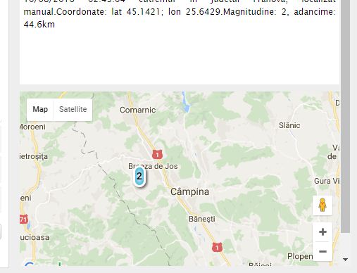 Potrivit Institutului Național de Cercetare-Dezvoltare pentru Fizica Pământului cutremurul a fost înregistrat manual la coordomatele lat 45.14/lon 25.64.
