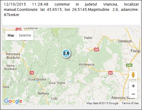 Potrivit Institutului Naţional de Cercetare-Dezvoltare pentru Fizica Pământului cutremurul a avut loc în zona Secuiu-Paltin-Vintileasca la intersecţia coordonatelor lat 45.65/lon 26.51.