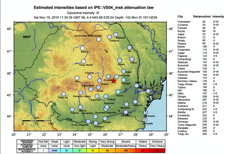 În tabelul de mai jos vă prezentăm intensitatea cutremurului așa cum este prezentat în tabelul postat pe pagina de internet infp.ro.