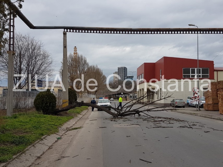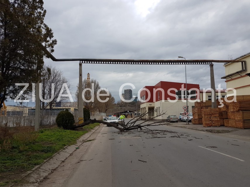 Din pricina vântului puternic, un copac s-a prăbuşit pe partea carosabilă, în Portul Constanţa (galerie foto+video)