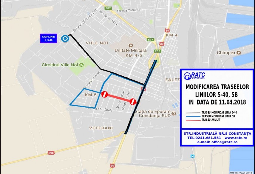 linia 5-40 - Șos. Mangaliei - Str. Pandurului - Str. Democrației - str. Vârful cu Dor și retur pe același traseu;