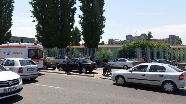 FOTO EXCLUSIV. Accident pe bulevardul Marinarilor Două maşini şi o motocicletă au intrat în coliziune (galerie foto)