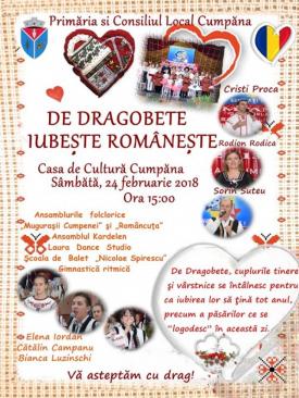 Primăria şi Consiliul Local Cumpăna organizează, la aceasta oră, o festivitate pentru sărbătorirea Dragobetelui.Evenimentul are loc în sala mare a Casei de Cultură din Cumpăna, care a devenit neîncăpătoare pentru mulţimea care a venit să asiste la spectacol.
