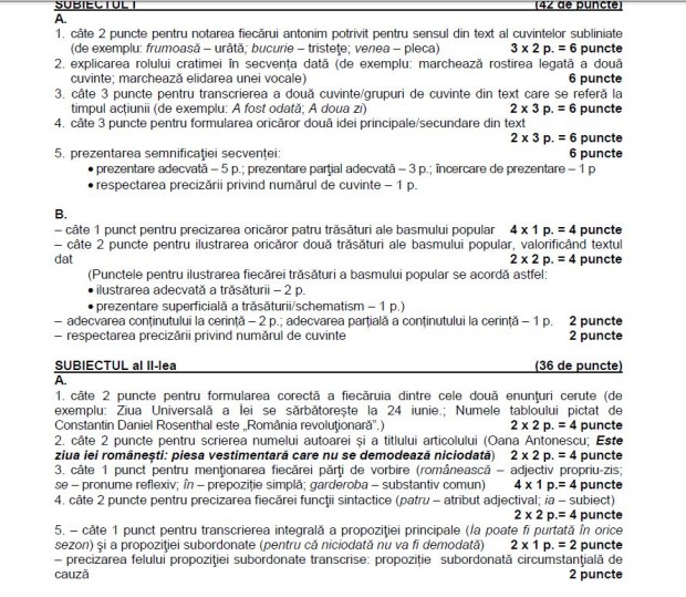 UPDATE 4. Subiecte - Basmul și ia tradițională românească. Baremul de corectare: Evaluare Națională, proba