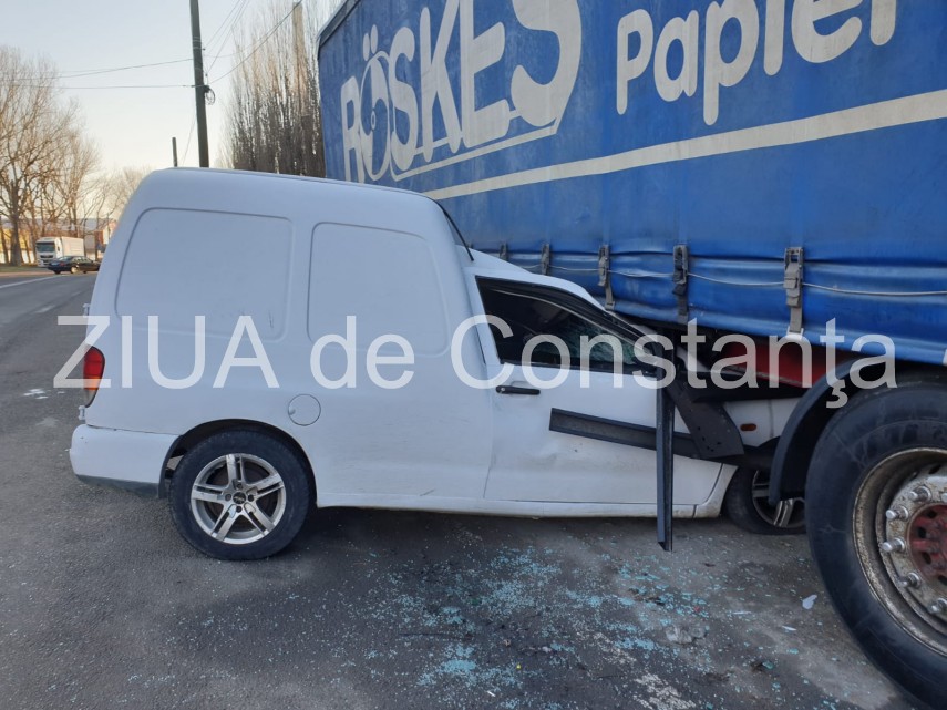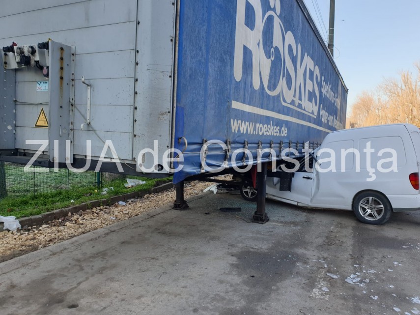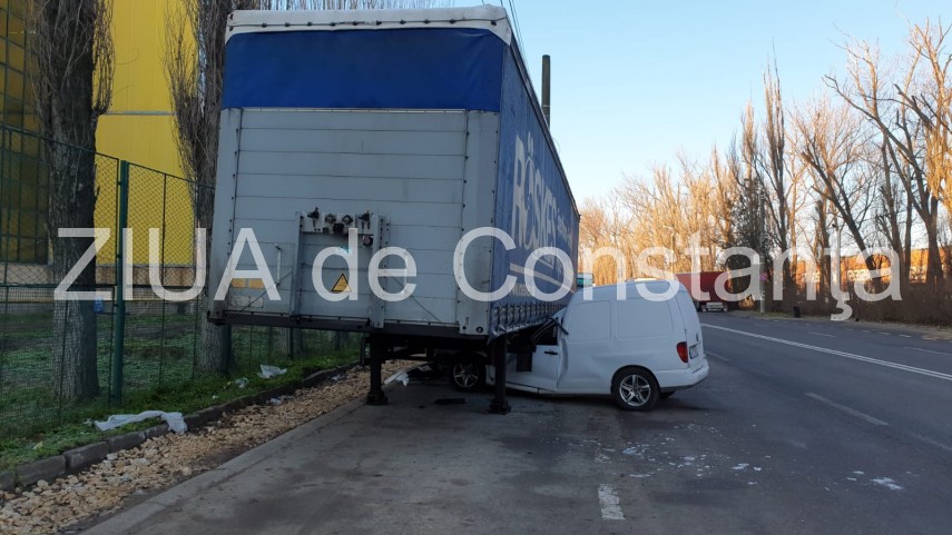 Eveniment rutier: Un automobil a intrat sub o remorcă parcată pe strada Industrială din municipiul Constanța
