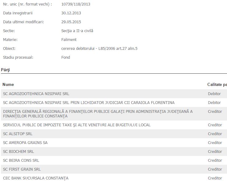 Gaad Invest Internaţional SRL contestă insolvenţa societăţii Agrozootehnica Nisipari SRL