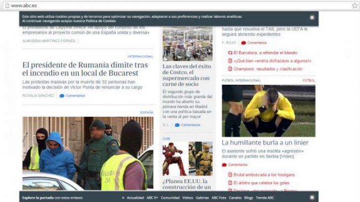 Jurnaliştii de la ABC, unul din cele mai importante cotidiene din Spania, l-au confundat pe preşedintele Klaus Iohannis cu premierul Victor Ponta. Aceştia au publicat o ştire potrivit căreia preşedintele României a demisionat şi nu premierul, după incendiul produs vineri seara în clubul Colectiv.Totuşi, în textul ştirii, jurnalistul precizează că hotărârea de a renunța la funcție îi aparține lui Victor Ponta. Potrivit publicaţiei, decizia a venit ca urmare a incendiului dintr-un club din București. S-a modificat apoi titlul ştirii.