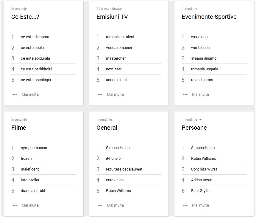 Căutările făcute de români în motorul Google în 2014 arată care sunt evenimentele majore ale anului, a personalităţilor anului şi a noilor tendinţe despre care românii au căutat informaţii.