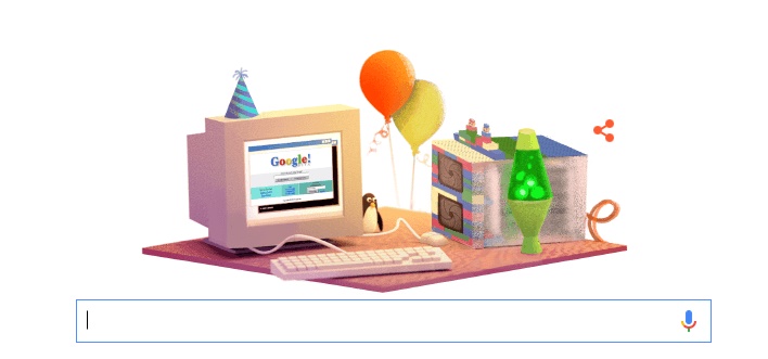 Compania Google, deținătoarea celui mai important motor de căutare din lume, aniversează, astăzi, 17 ani de la înființare. Ca de obicei, Google a lansat un logo special pe prima pagină a motorului de căutare, în care apar două baloane şi un computer cu un coif de sărbătoare.Google îşi modifică logoul ocazional, pentru a serba un anumit eveniment major sau o personalitate care a schimbat lumea.