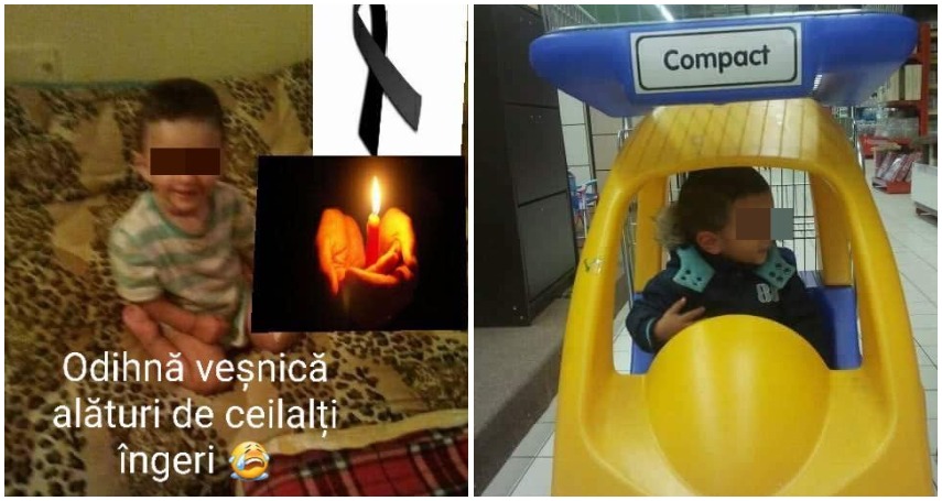”Odihnă veșnică printre ceilalți îngeri” este mesajul dureros transmis alătuiri de două fotografii cu micuțul care a decedat.