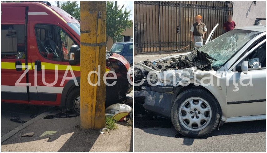 UPDATE: Accidentul a avut loc pe strada Meșterul Manole la intersecție cu strada Mugurului. În accident a fost implicată o ambulanță SMURD și un autoturism marca Skoda înmatriculat în județul Constanța.
