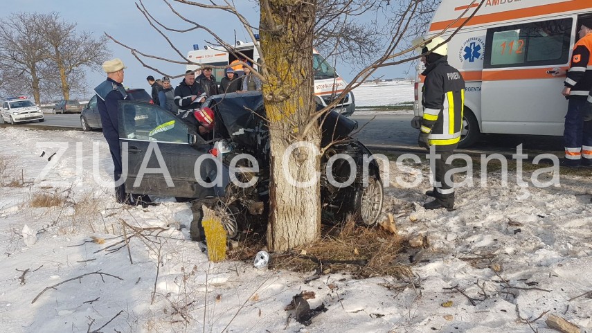 Potrivit IPJ Constanţa, din primele cercetări s-a stabilit că, şoferul, o femeie, ar fi pierdut controlul asupra direcției de mers, părăsind partea carosabilă și a intrat în coliziune cu pom de pe marginea carosabilului. În urma accidentului rutier a rezultat vătămarea corporală usoară a conducătoarei auto și a celor doi minori, de pe bancheta spate. Cei doi copii au 4, respectiv 9 ani şi au ajuns împreună cu mama lor la spital. Şoferiţa are 36 de ani.