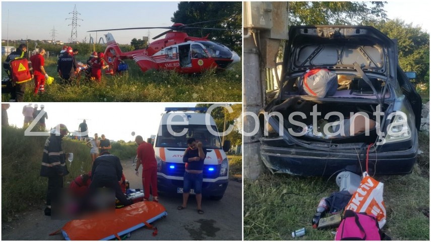 UPDATE. Imagini de la eveniment. Accident rutier grav la ieșire din Ovidiu. Șapte persoane, dintre care patru copii, au fost rănite. Intervine elicopterul SMURD (galerie foto + video)